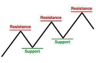 Kebiasaannya Line chart lebih senang dalam pembinaan support dan resistance kerana ianya hanya menunjukkan open and close price sahaja. Pembinaan nya tidak memerlukan low price or high price