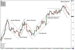 Selain itu ramai juga trader yang menggunakan channel dimana pembinaan garis mengikut sudut/angle pergerakan graph. Ianya dibina berdasarkan titik poit teratasa dibahagian atas dan titik point paling bawah dibahagian bawah. Lihat contoh dibawah.