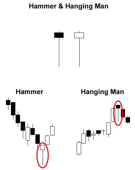 The hammer and hanging man kelihatan hampir sama namun ianya memberi makna pergerakan yang berbeza. Anda perlu tentukan perbezaannya